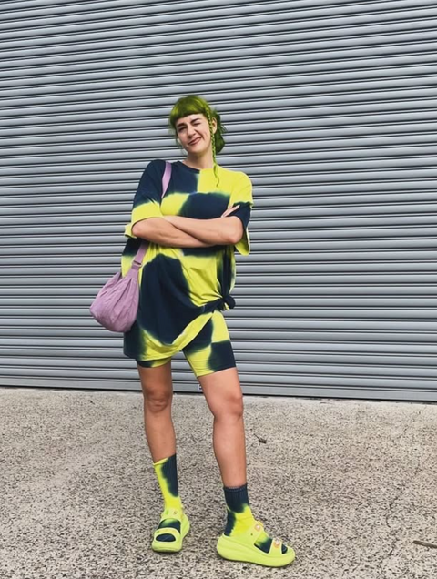 River oversized mini shirt dress with matching bike leggings and socks